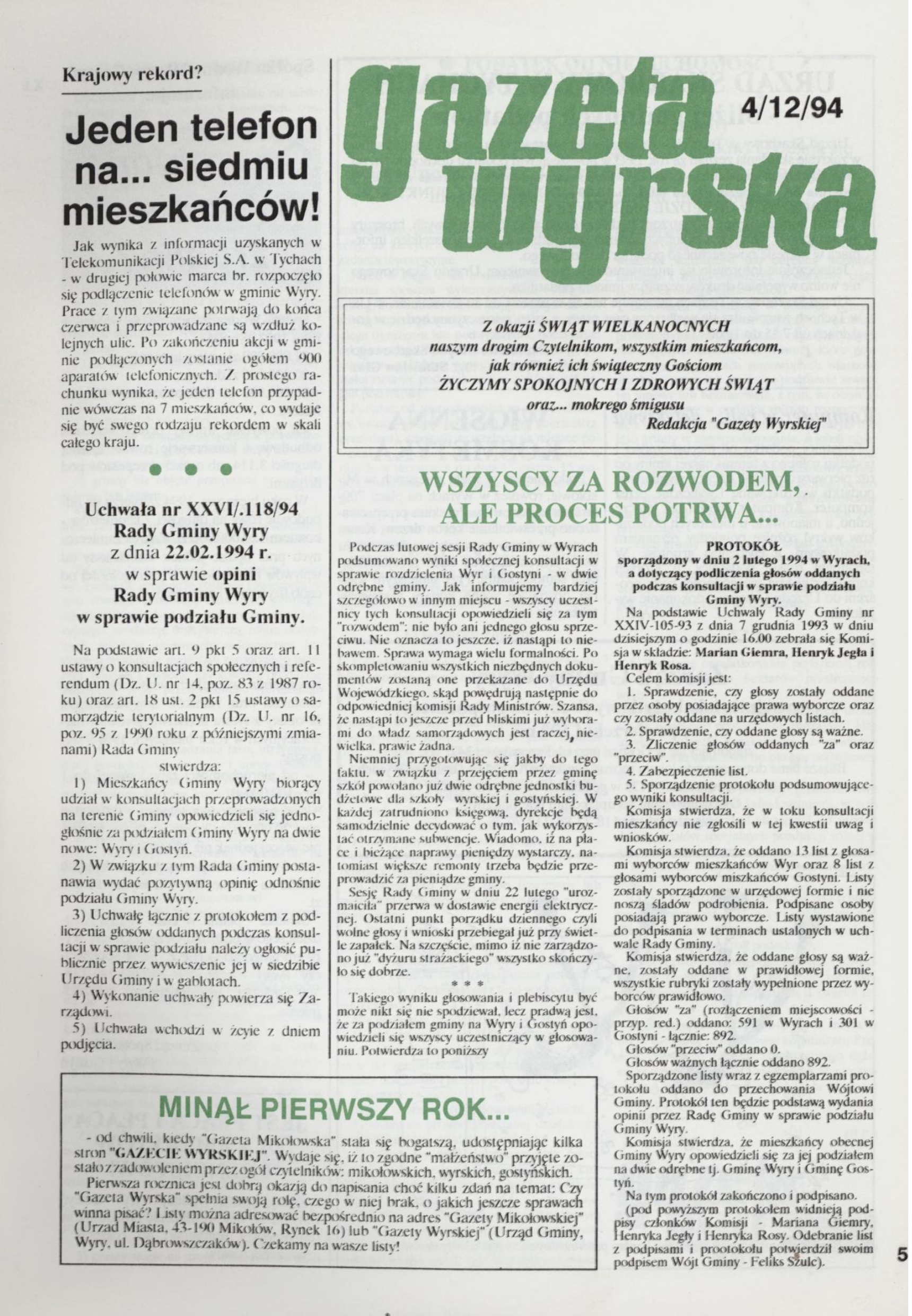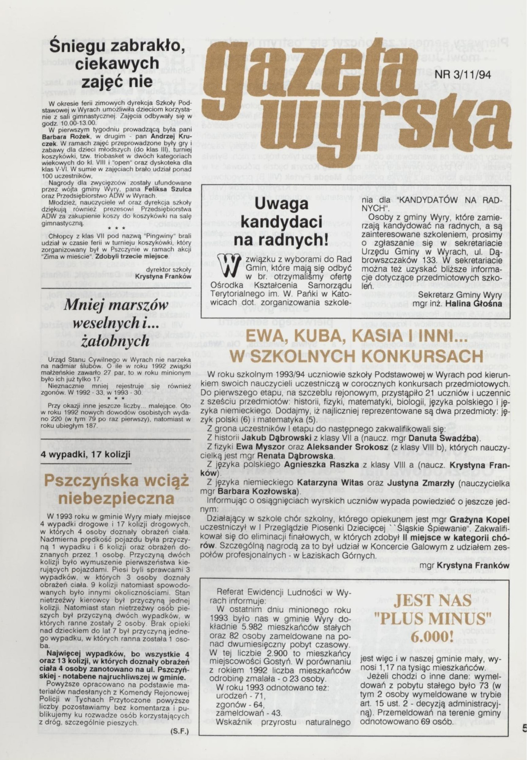 Dodatek w Gazecie Mikołowskiej, nr 5, 1994.