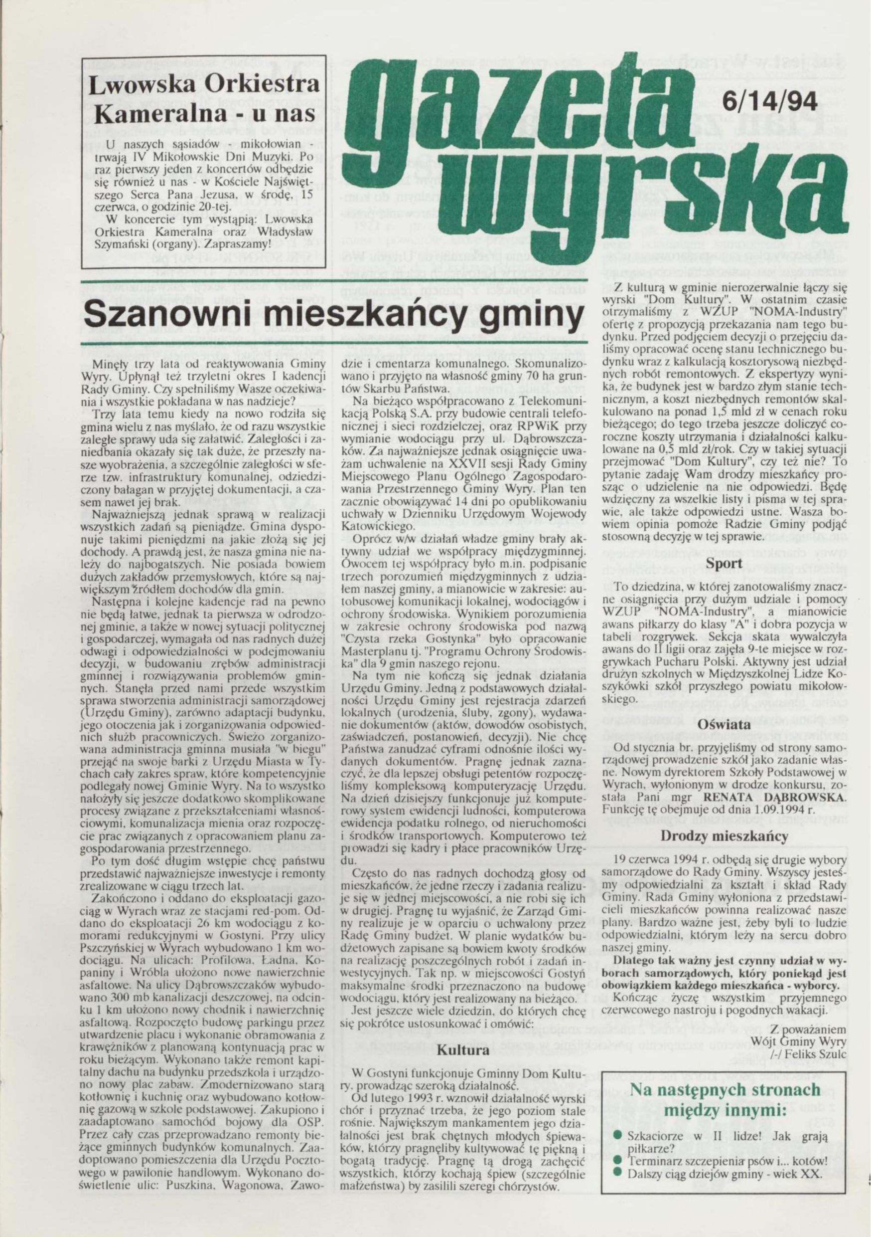 Dodatek w Gazecie Mikołowskiej, nr 6, 1994.