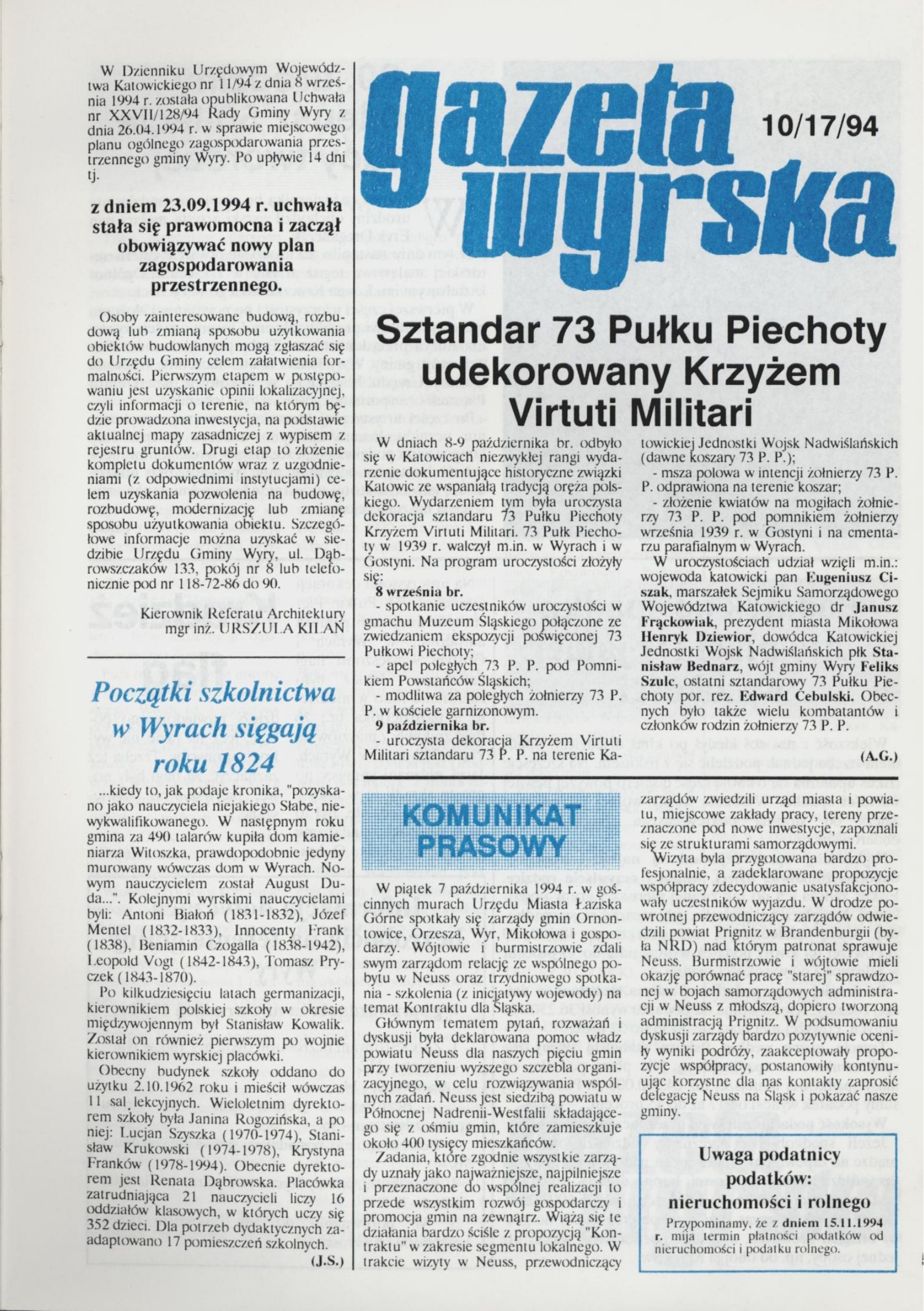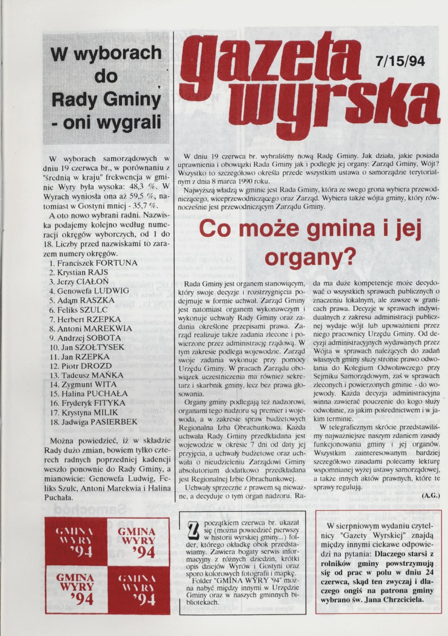 Dodatek w Gazecie Mikołowskiej, nr 7, 1994.